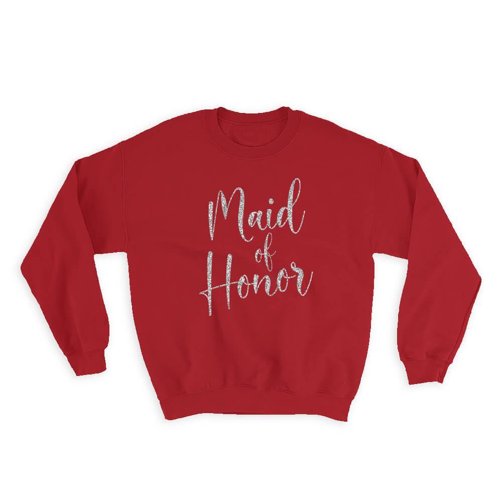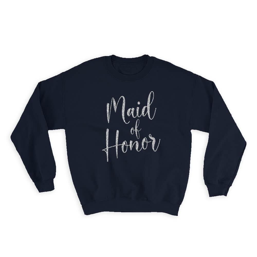 Maid of Honor : Gift Sweatshirt Faux Glitter Silver Wedding Bride Party Favors