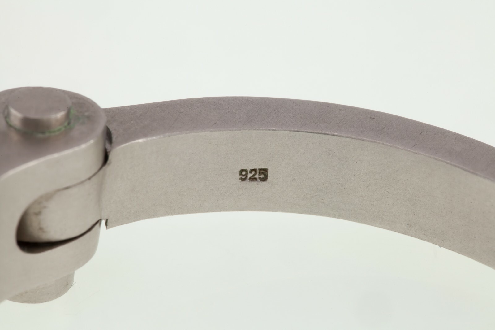 Features Sterling Silver Hinged Cuff Design, 7.5-15mm from narrow to widest point All shipments include insurance and delivery confirmation or signature confirmation. Local Pick-up is available in our showroom. All international packages will have the required customs declaration and value of order. Your continuing satisfaction is very important to us. We offer a 30 day money back return policy. If you are unhappy with your purchase for any reason, please notify us so that we can begin the returns process. All items for sale are available for viewing at our Southern California showroom. We would like to thank all of our loyal customers for their continued support. If you have any questions, comments or concerns, please click "Ask a question" below, and we will respond as soon as possib