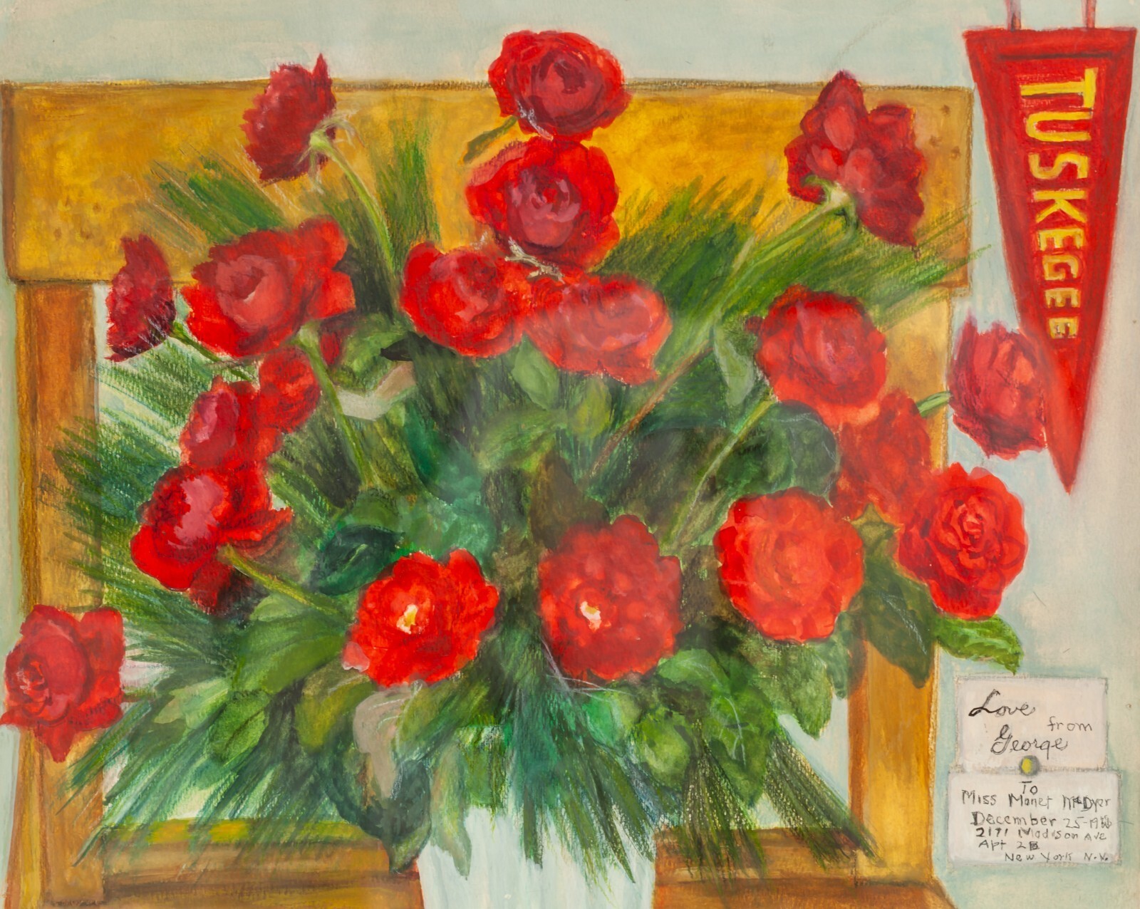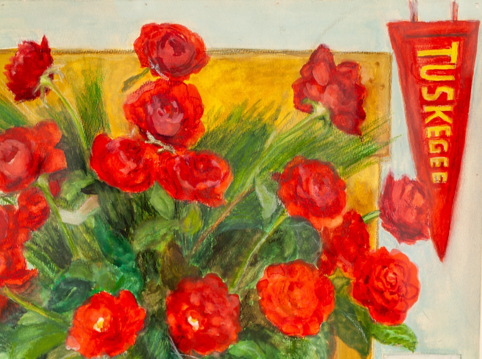 Fleurs en vedette avec carte avec Tuskegee Pennant sur Vanity