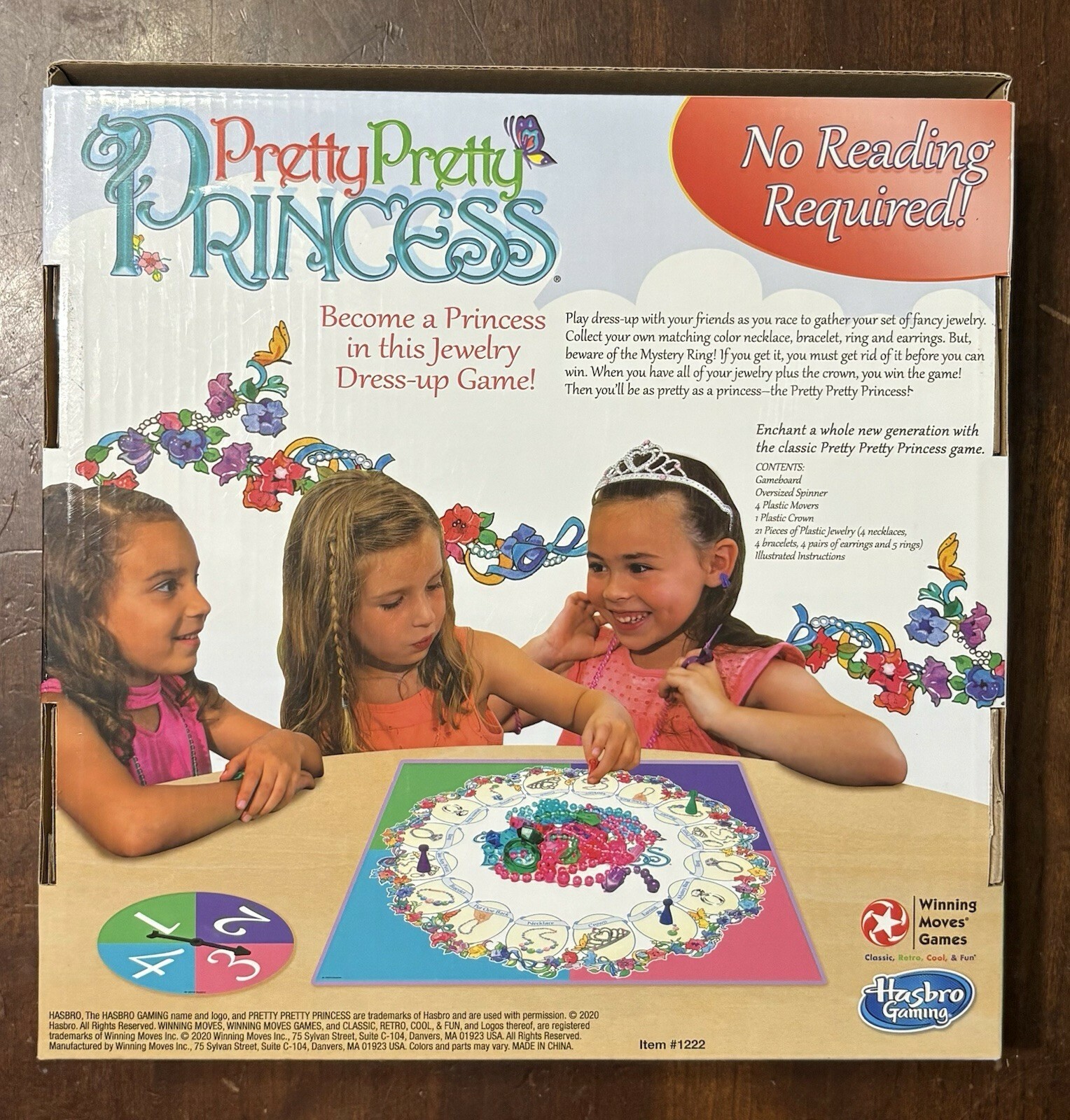 The Pretty Princess Board Game by Winning Moves is a family game night favorite that requires no reading. Designed for 2 players or more, this game is suitable for ages 5 and up. With a fun and engaging game board featuring the charming title "Pretty Pretty Princess," this contemporary board game is perfect for both boys and girls who enjoy a mix of strategy and luck during gameplay. Perfect for a casual night of entertainment without the need for any reading skills.