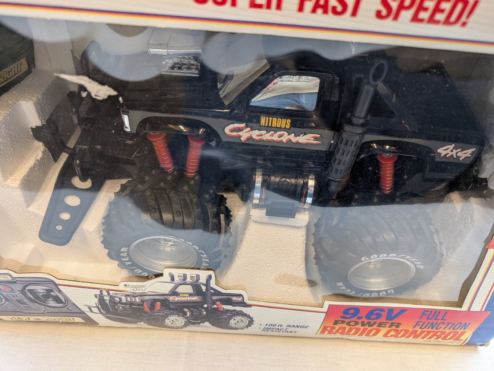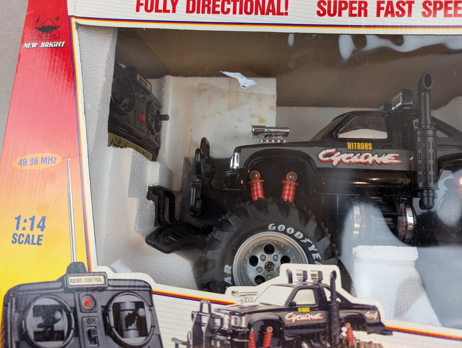 - RARE Vintage New Bright RC 4x4 1:14 scale Cyclone Truck Black 90s Y2K NEW IN BOX