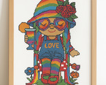 Rainbow Hippie Gnome Cross Stitch Pattern | PDF Embroidery Chart with Drink & LO