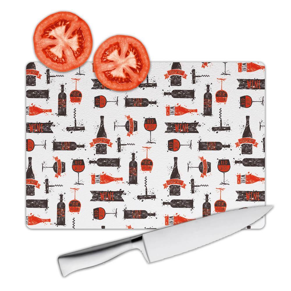 Red Wine Sketch : Gift Cutting Board Delicate Bottle Glass Corkscrew Pattern Kit