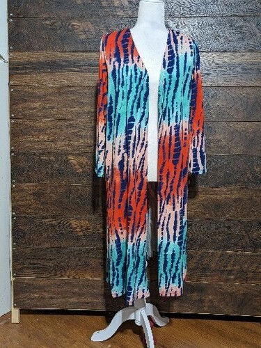 - Rouge Collection Women Cardigan 4X Multicolor Tie dye Open Front Side Slits
