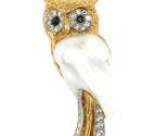 Ruser 18k Gelbgold Süßwasser Gezüchtete Perle Eule Brosche 0.60 Karat Diamant