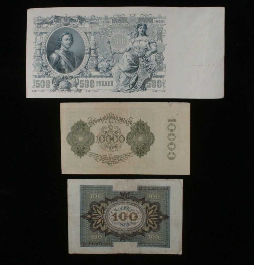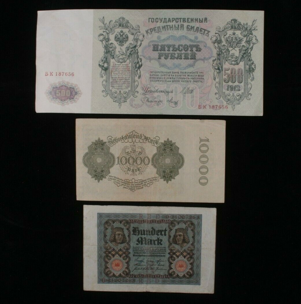 Russia & Germany Misc 3-Notes Currency Lot Imperial russia & Weimar Republic