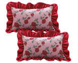 SOGA 2X 30x50cm Rose Print Pillow Cover with Red Ruffle Border