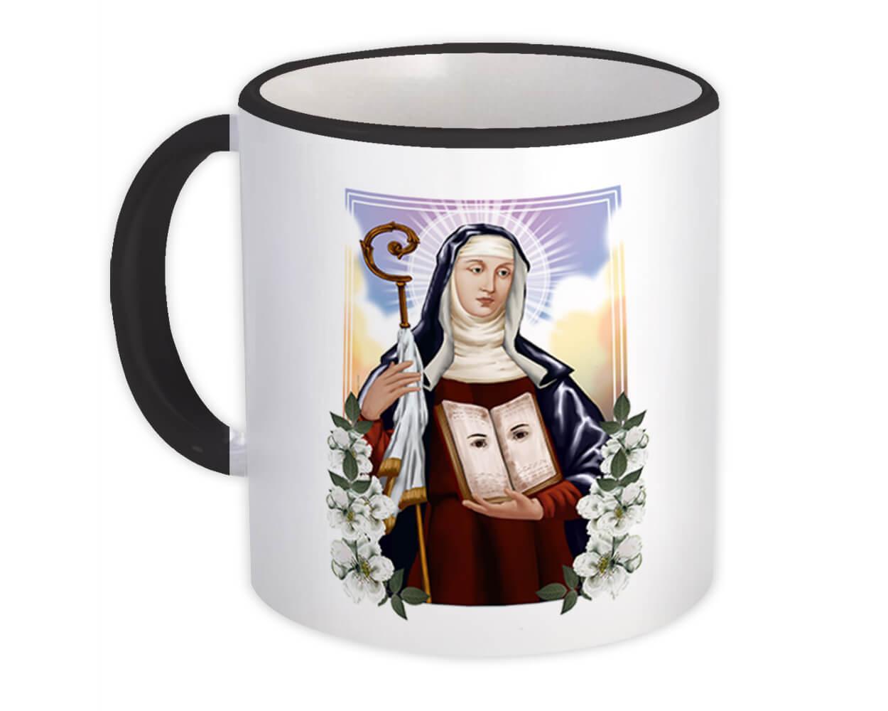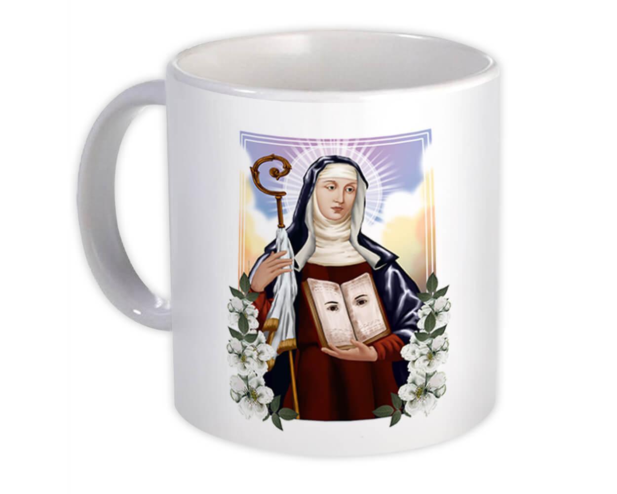 Saint Odile Of Alsace : Gift Mug Catholic Church Bible Eyes Staff Flowers Religi