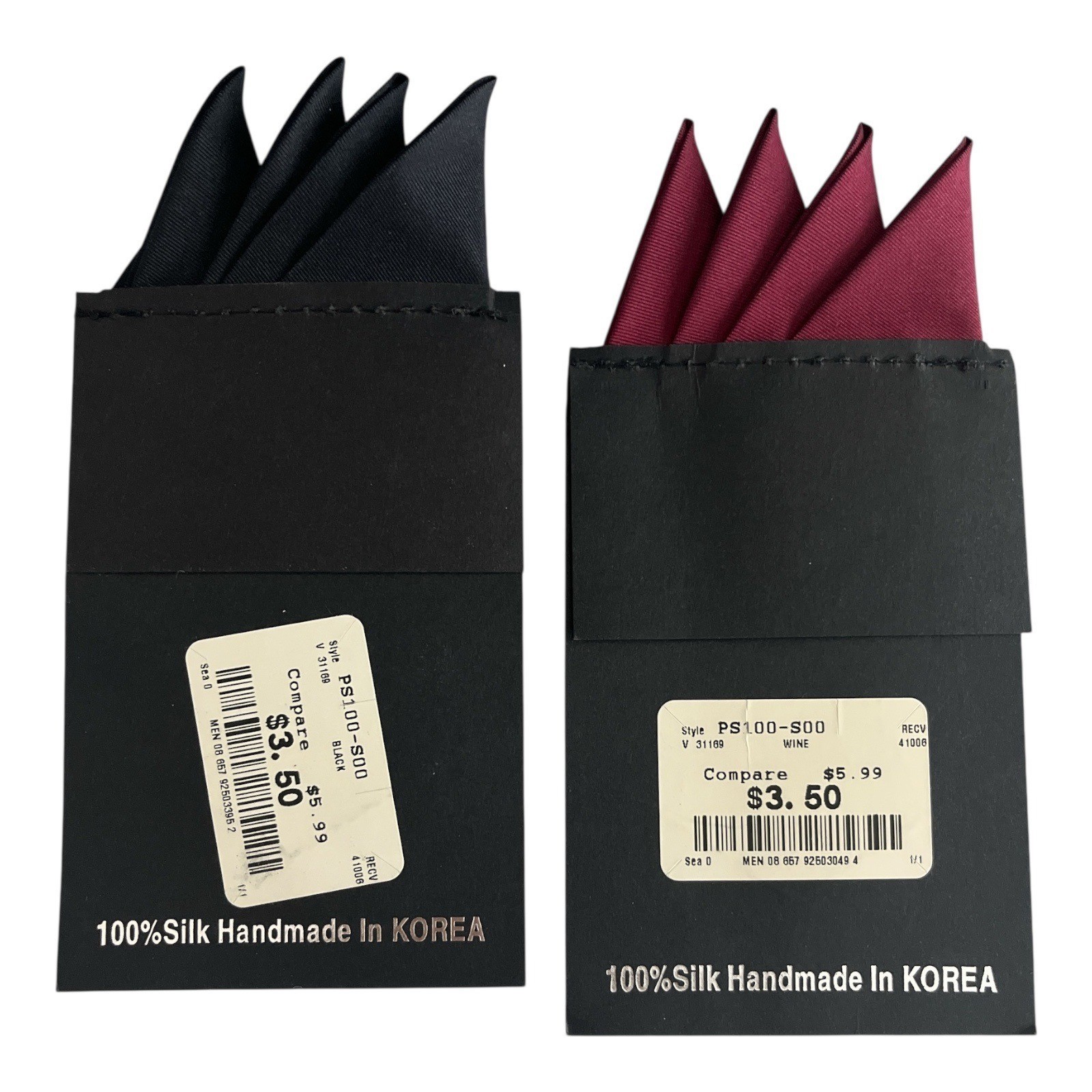 Set of 2 Bergamo New York 100% Silk Pocket Squares Black Wine Handmade in Korea