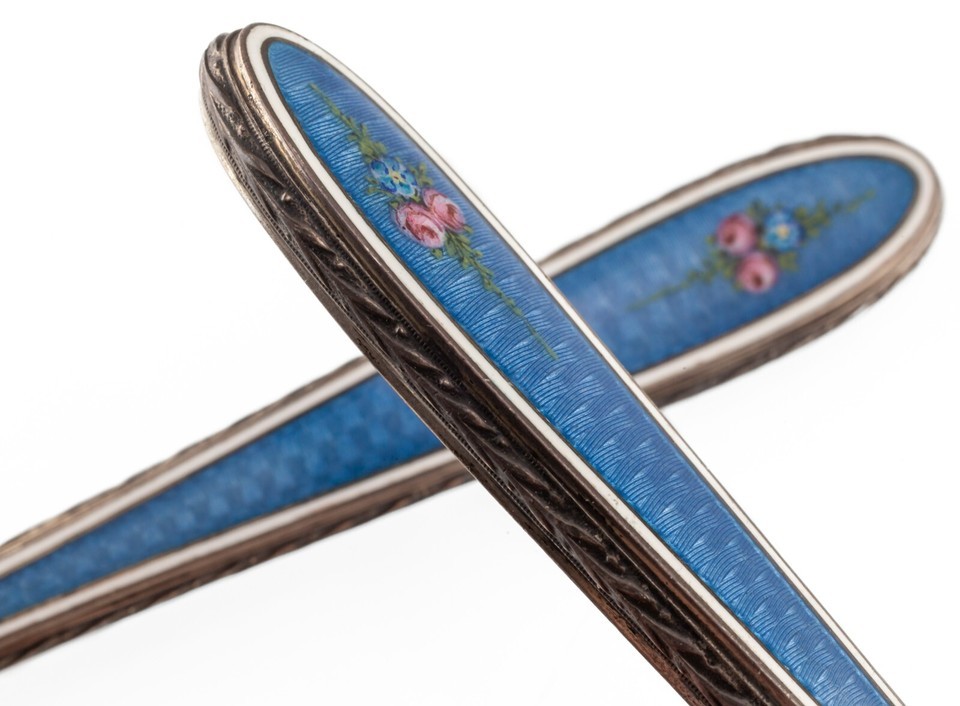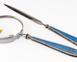 Silver Enamel Guilloche Magnifying Glass and Letter Opener Set Sheffield