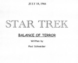 - STAR TREK: BALANCE OF TERROR by Paul Schneider 1966 repro TV series script