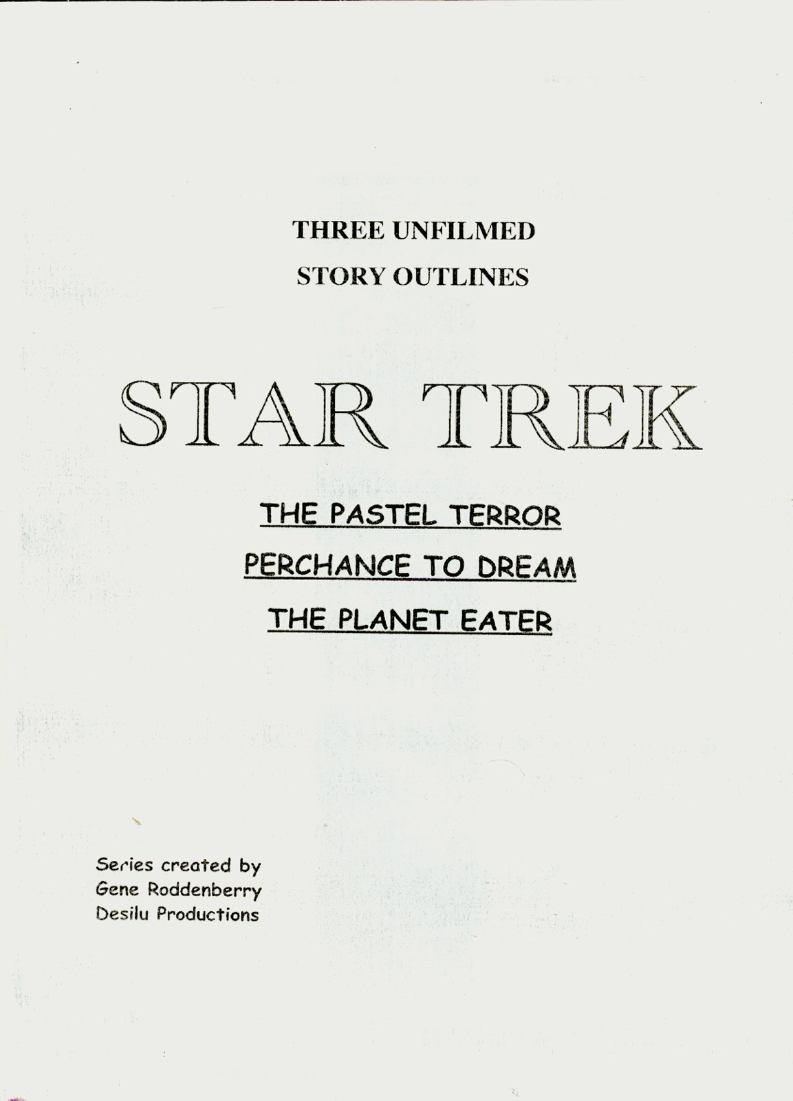 - STAR TREK: THE ORIGINAL SERIES set of three unfilmed story outlines