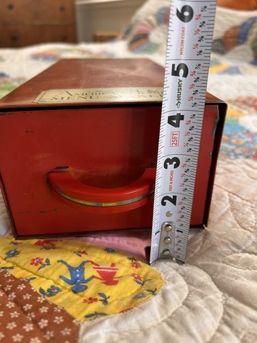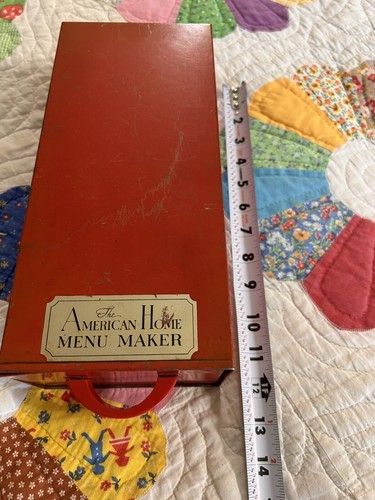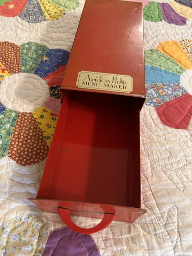 The American Home Menu Maker Red File Metal Recipe Box Pull Drawer Vintage