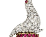 - Tiffany & Co. Vintage 18k Gold/Platinum Diamond Ruby Seal Brooch Historical