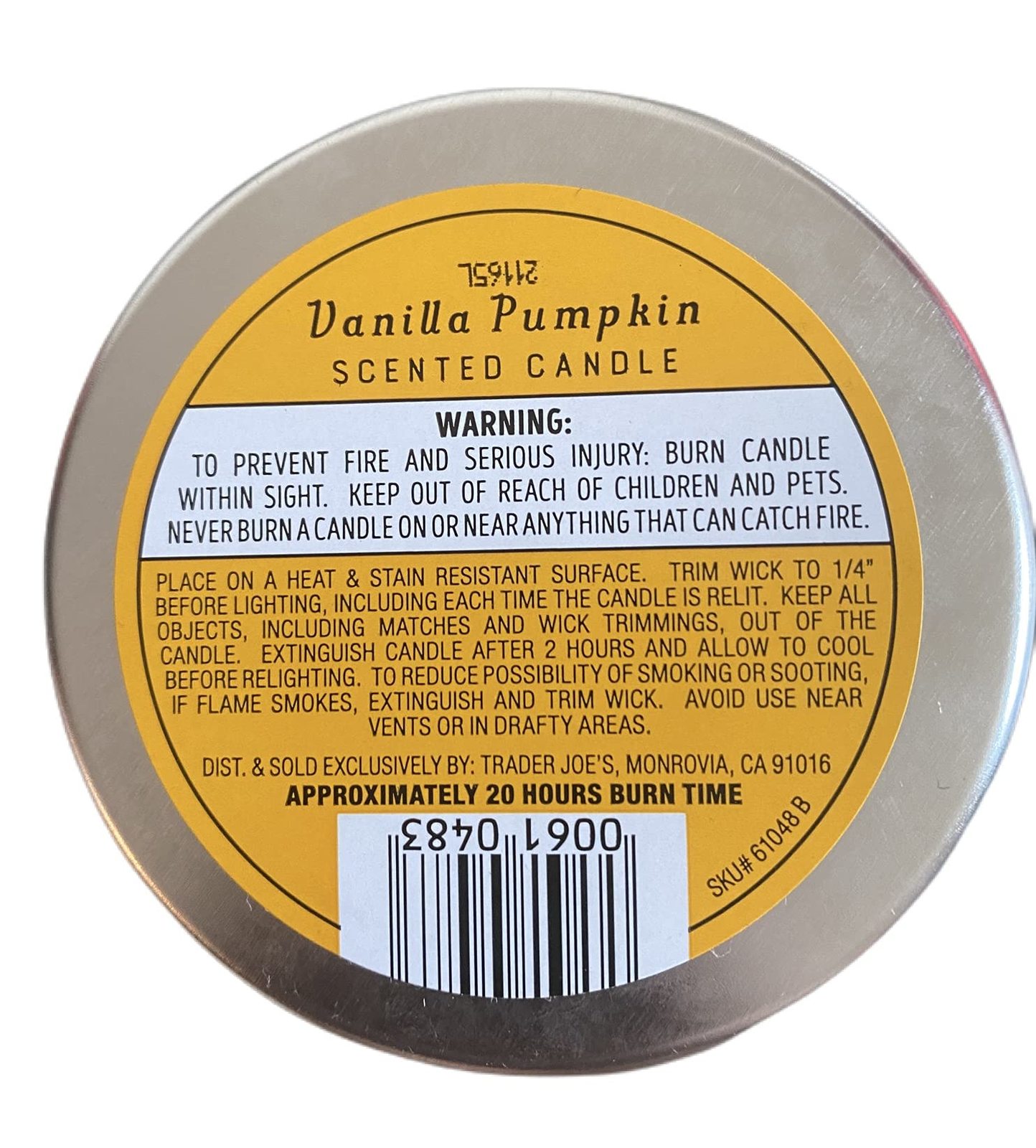 Trader Joe's Pumpkin Vanilla Scented Candle |