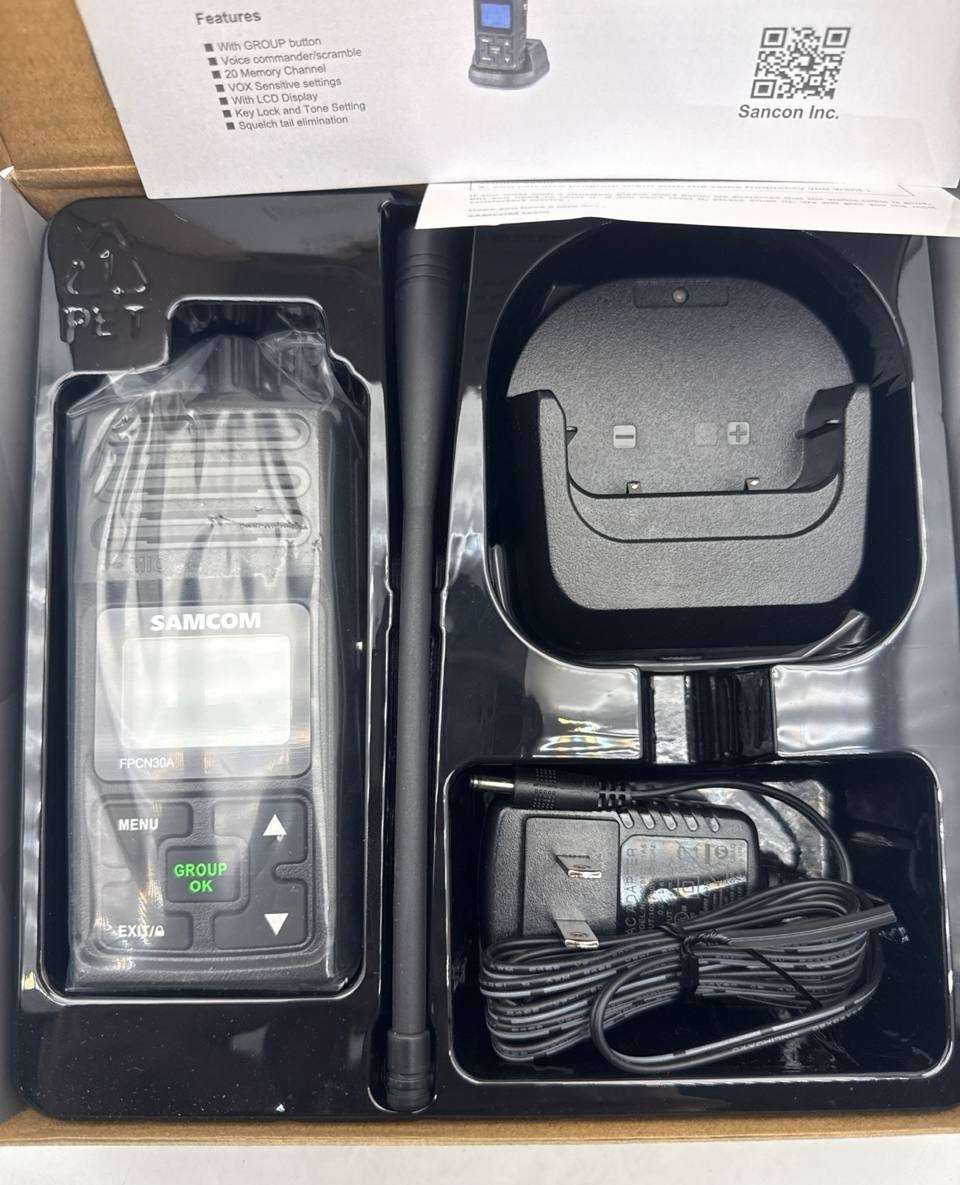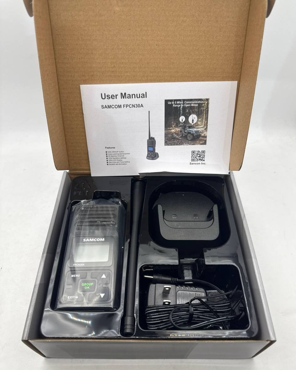 Item includes: Please note: This item includes 1x Samcom FPCN30A Two Way Radio,1x 1500mAh Battery, 1x Long Antenna, 1x Dock Charger (US Standard), 1x Power Supply, 1x Belt Clip, 1x K-type Earpiece Only ? As Pictured. No other accessories are included.