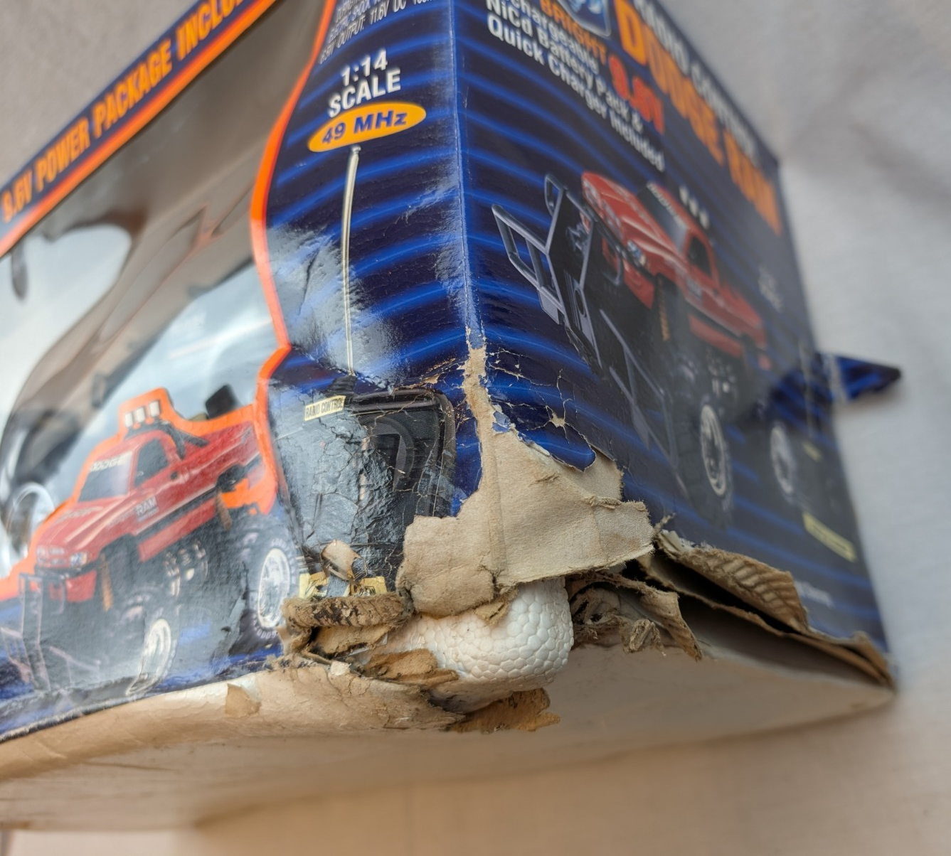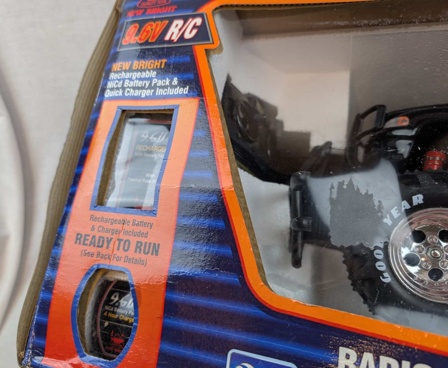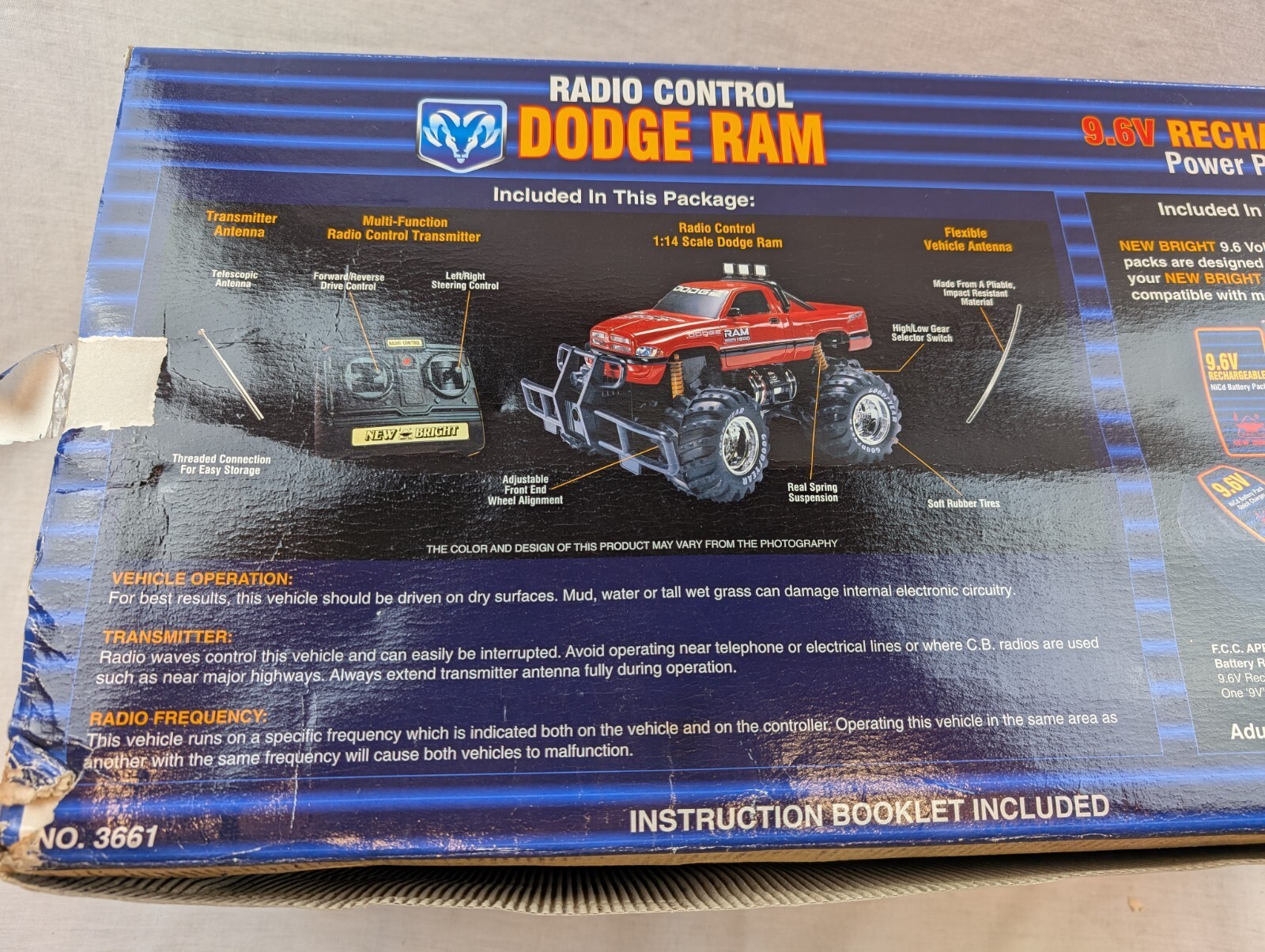 - Vintage 1998 New Bright 9.6v 1:14 Radio Control Black Dodge Ram 1500 damaged box