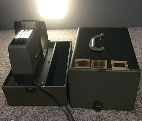 This is working unit. Comes as pictured in original case.(has some signs of wear such as discolorations marks). Does not come with slide changer. Original light ball works. Comes also with three paper slide holders. What you see is what you will receive.Thank you