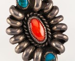 Vintage Navajo Argento Sterling Turchese E Corallo Anello Misura: 6.50