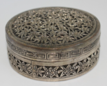 - Vintage Floral Bird Open Filigree Silver Trinket Box Round With Lid Non Magnetic