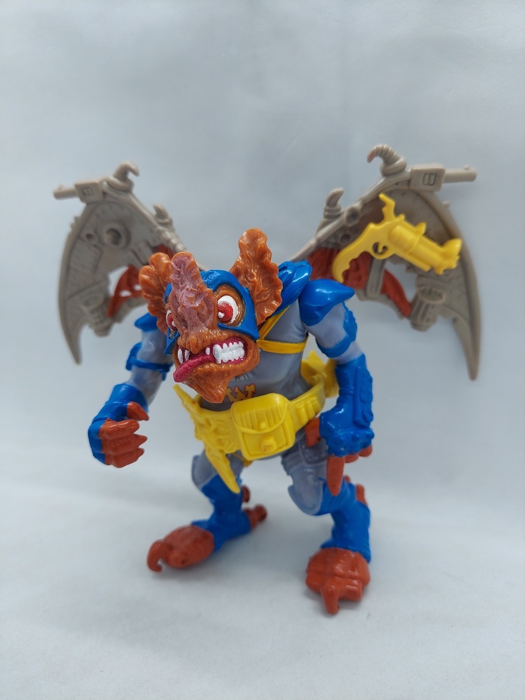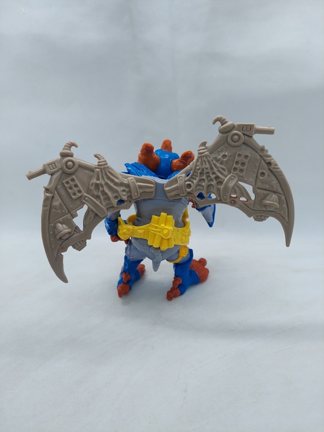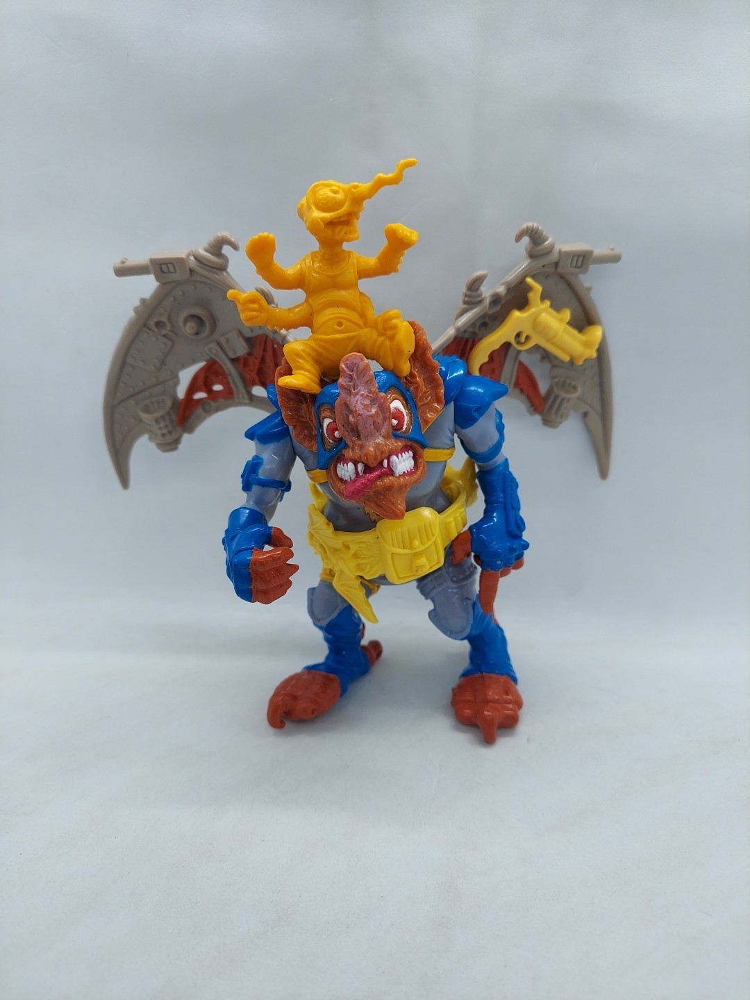 The figure is in good used condition. Please look at the pictures, that is what you will receive. I believe he has everything except the bomb. It does have a tacky feel.