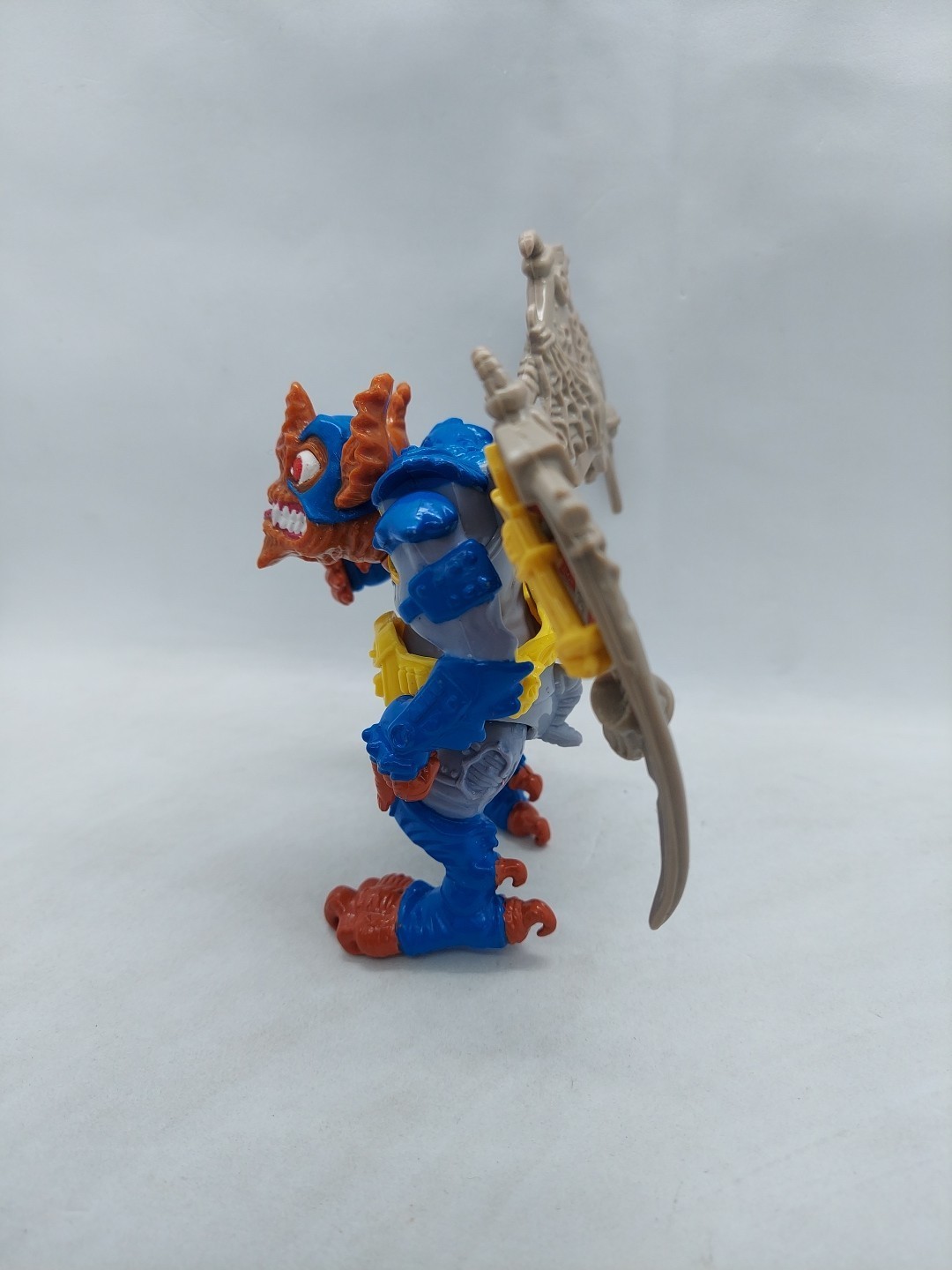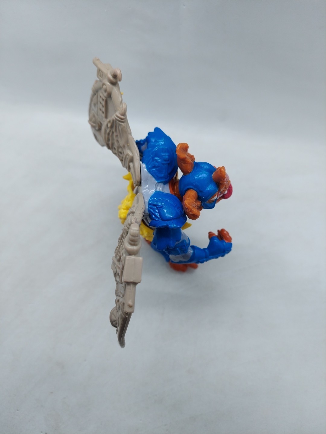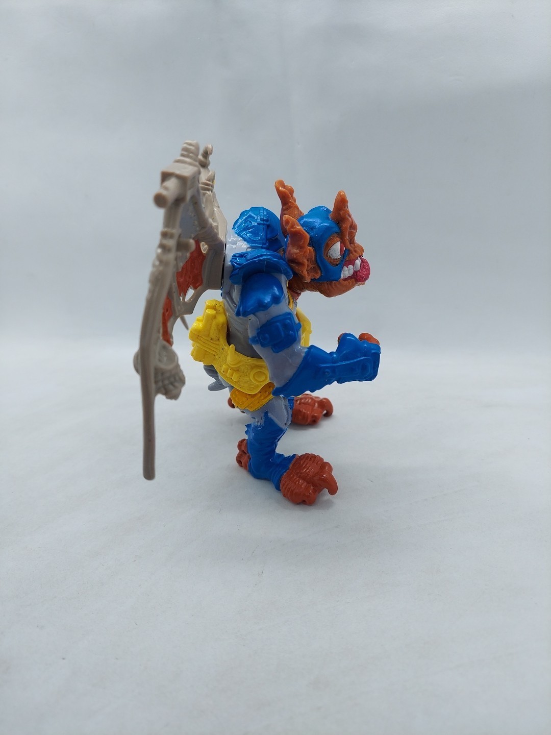 The figure is in good used condition. Please look at the pictures, that is what you will receive. I believe he has everything except the bomb. It does have a tacky feel.