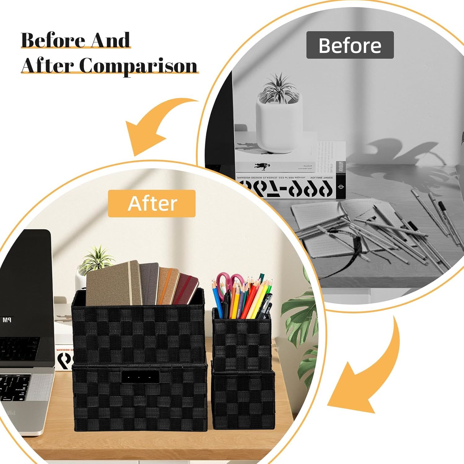 - Woven Storage Box Basket Bin Container, Storage Baskets Organizing Bins, Black